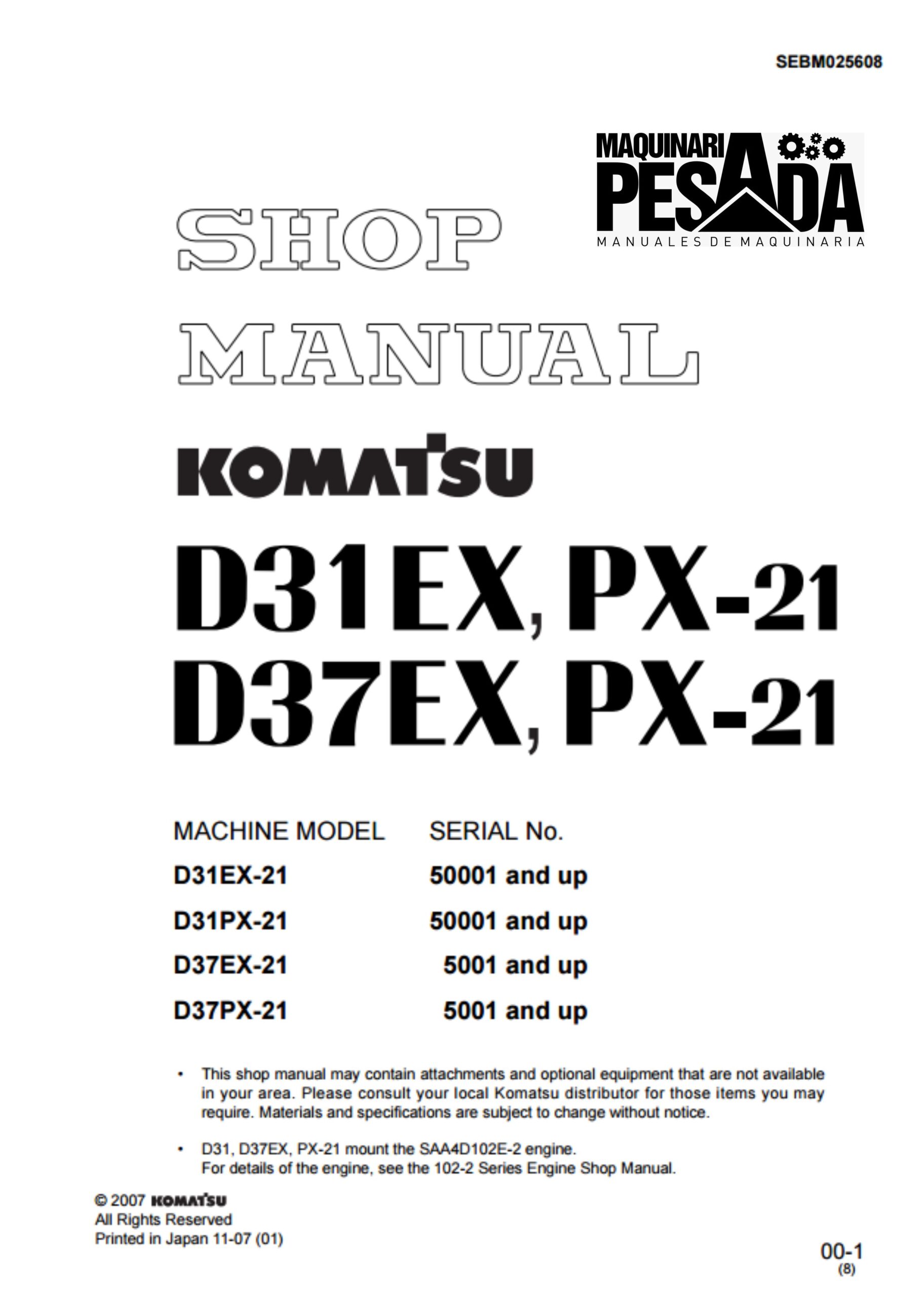 BULLDOZER KOMATSU D31EX-21 SERIAL NUMBERS 50001 and up