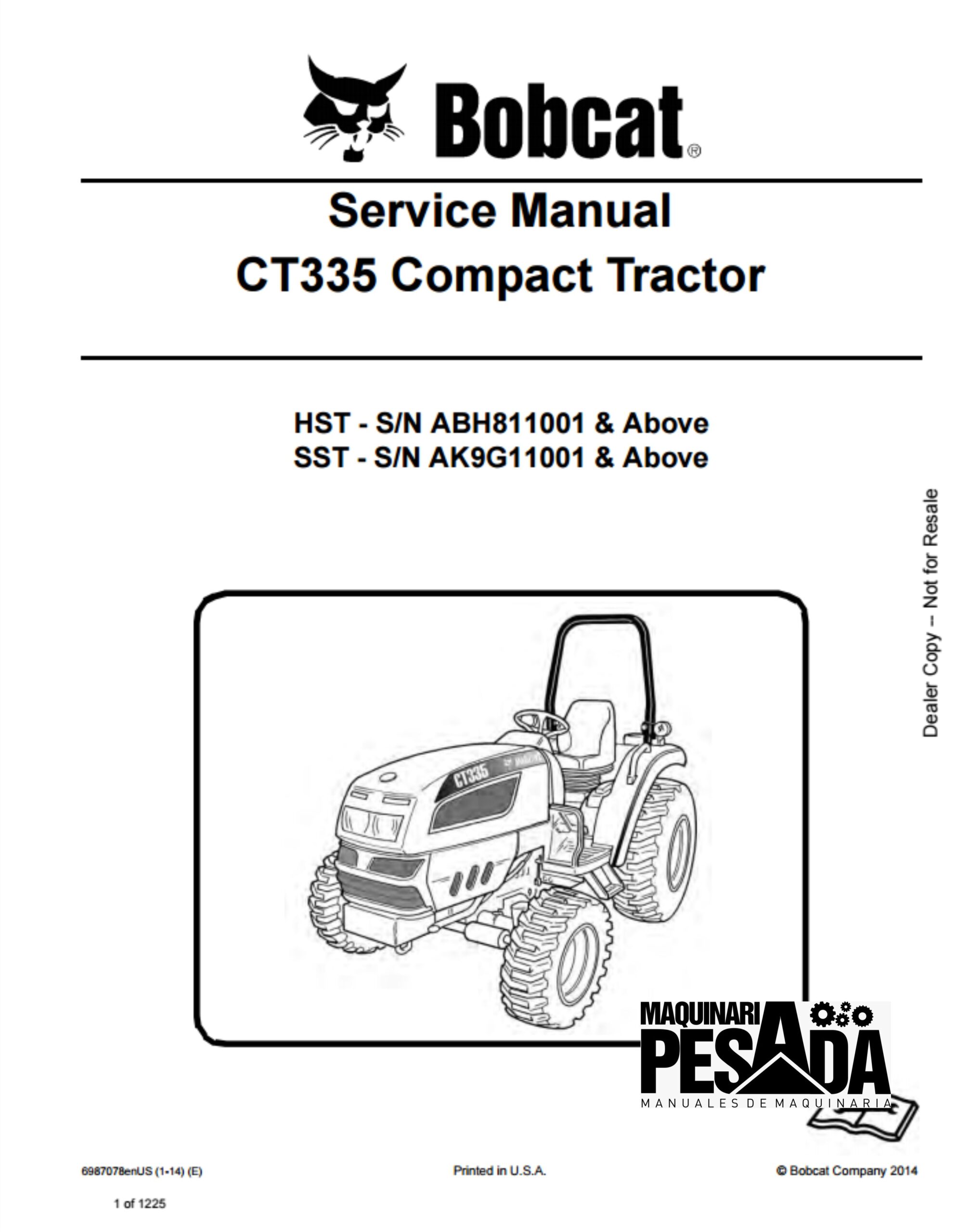 CT335 Compact Tractor HST – S/N ABH811001 & Above