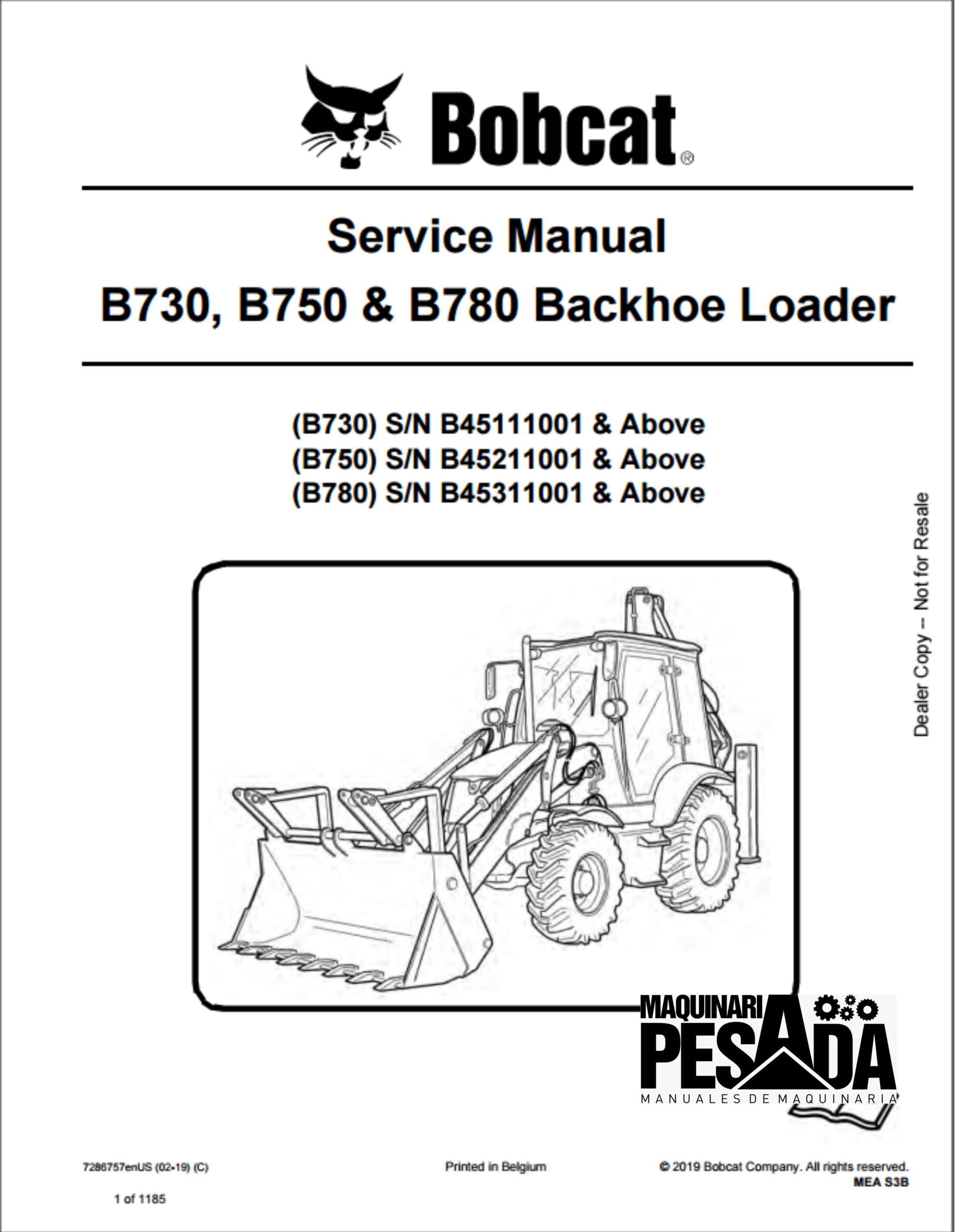 SERVICE MANUAL Backhoe Loader B730, B750 & B780 SN B45111001 & Above